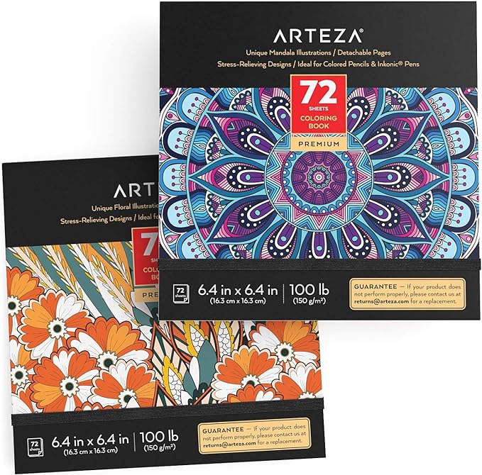 14 August 2024Categories ARTEZA Adult Coloring Books, Floral & Mandala Designs, Pack of 2, 72 Sheets Each, 6.4×6.4 Inches Coloring Pages, 100 lb Paper