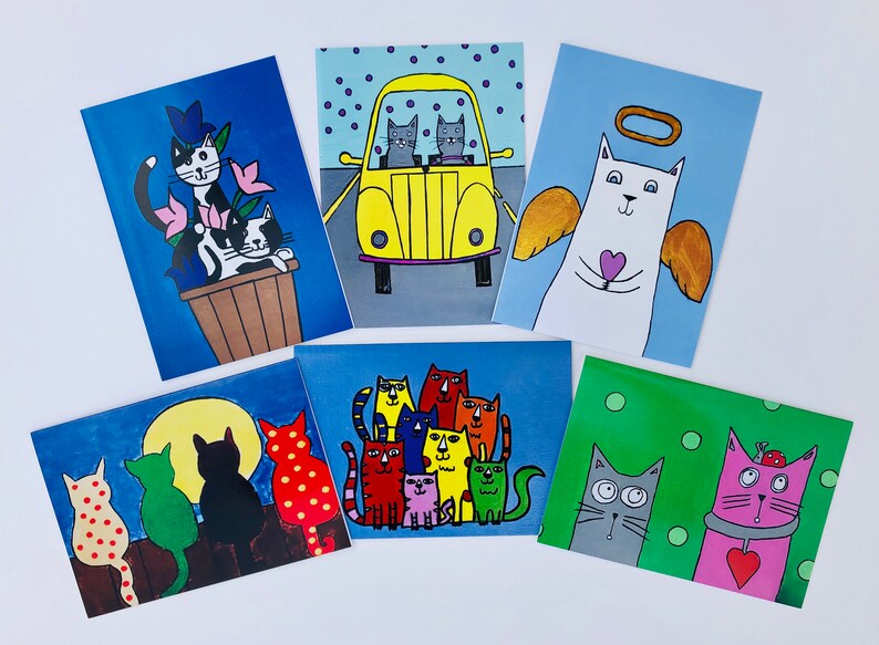 1 August 2024Categories Whimsical Original Art Cat Pack Note Cards by Artist with Autism Sean Brushingham